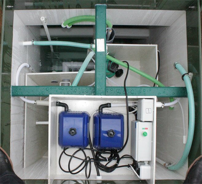 Септик Топас 5 Пр является самой популярной станцией в модельном ряде Топас. Автономная канализация Топас 5 Пр идеально подходит для загородных домов, коттеджей, летних дач численность проживающих, в которых не превышает 5 человек. При этом цифра 5 в названии обозначает максимально число пользователей, а Пр – наличие дополнительного насоса для принудительного сброса очищенной воды. Производительность станции позволяет перерабатывать до 1 кубического метра поступающего стока. Этот объем позволяет иметь в доме следующее сантехническое оборудование: - унитаз (1 штука); - раковина (2 штука); - душевая кабина (1 штука); - стиральная машина (1 штука); - посудомоечная машина (1 штука). Канализация для дачи Топас 5 Пр может разово принять ( залповый сброс) до 220 литров стока. Поэтому людям имеющим или желающим установить в своем загородном доме ванну данная станция не подойдет, необходимо будет выбирать из следующих по размеру станций Топас 8 или Топас 10. Габаритные размеры Топас 5 Пр длина – 1,1 метр, ширина – 1,2 метра, высота – 2,5 метра. При этом вес станции составляет 230 кг. Вход подводящей канализационной трубы можно осуществить в диапазоне 55 – 95 см. Выход очищенно воды осуществляется при помощи насоса, что особенно часто используется на участках с грунтами имеющими плохую пропускную способность.